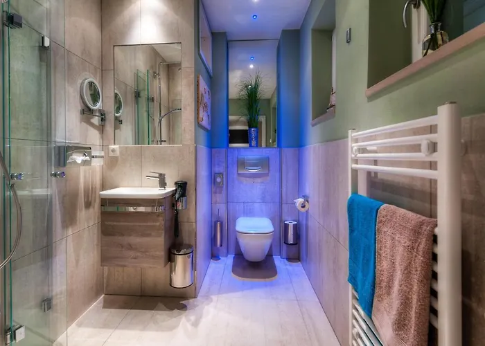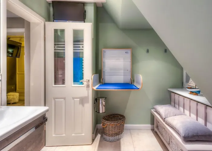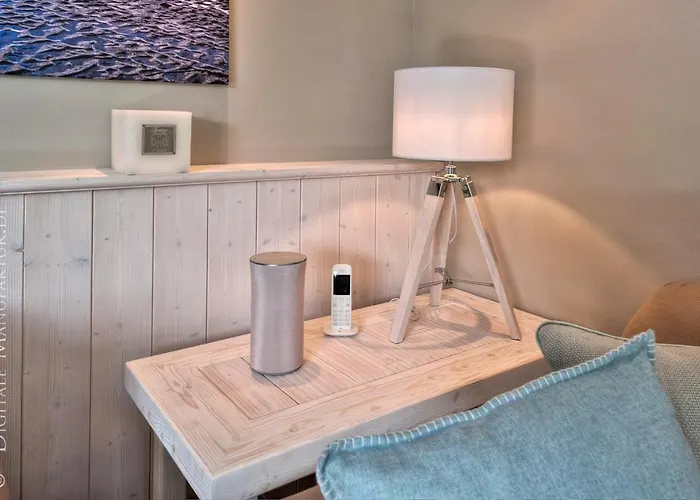 "Kleine Flucht" Kleine Flucht Villa har balkong och sitthörna samt mediautrustning som snabbt internet och TV för gästernas fritid. Strykutrustning och strykjärn med strykbräda erbjuds för en bekväm vistelse. I badrummet finns även en dusch. Hårtorkar, badlakan och handdukar finns också till ditt förfogande.